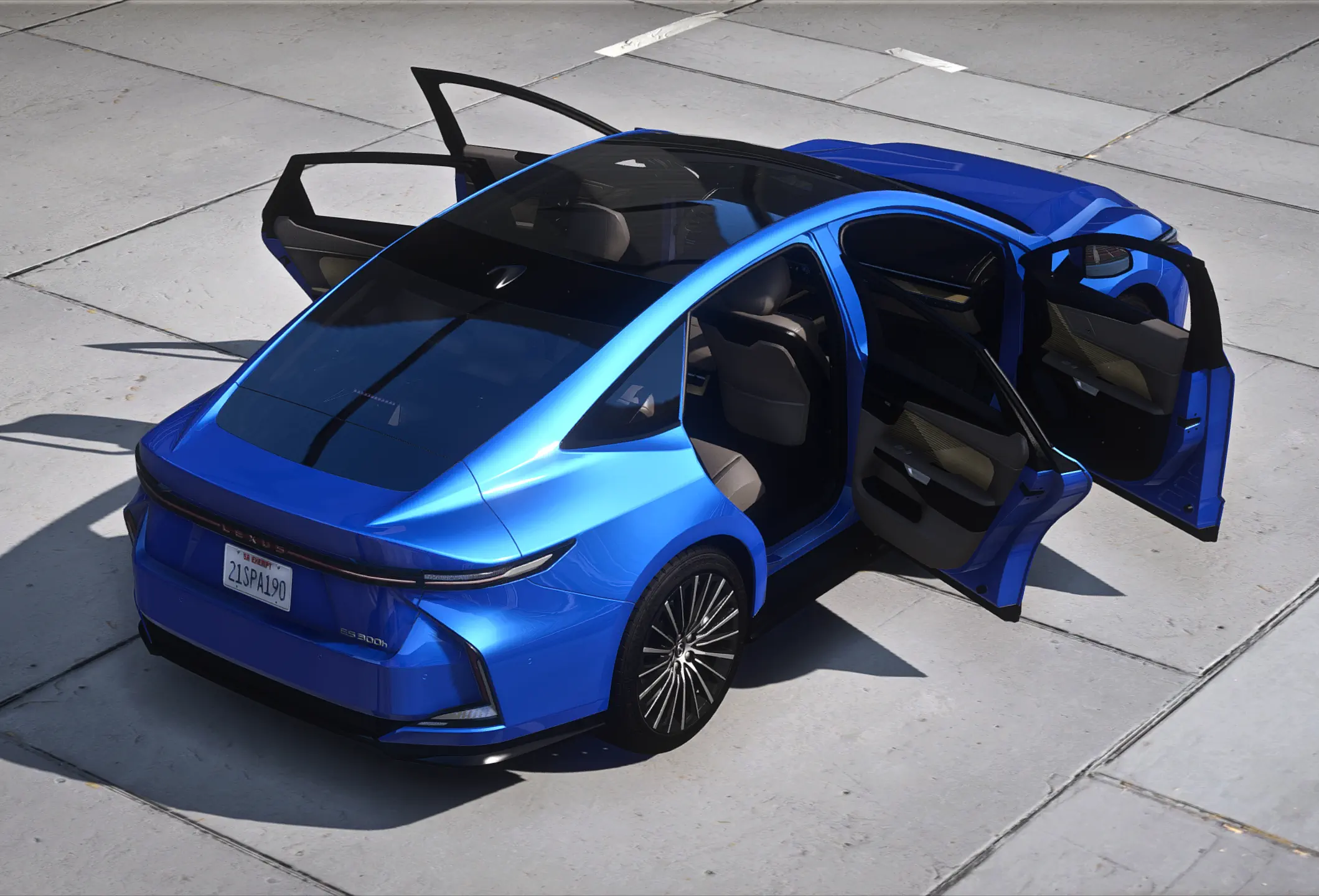 The Lexus ES 2026 ushers in a new era of "Clean Tech x Elegance," featuring a radical redesign that is over six inches longer and significantly more aerodynamic than its predecessor. This eighth-generation flagship transitions to a purely electrified lineup, sporting the new "spindle body" front end and a sleek, fastback-style silhouette. Inside, the mod features the high-tech Tazuna cockpit, dominated by a massive 14-inch touchscreen and 3D-printed bamboo accents. This model is highly optimized for FiveM Roleplay (RP) servers; while the engine and trunk remain closed to ensure a low file size and maximum FPS, the main doors open to a flawless 4K interior. The highlight of this mod is the meticulously crafted 3D taillights, featuring the new L-signature light bar and illuminated Lexus logo that look absolutely stunning under nighttime streetlights.