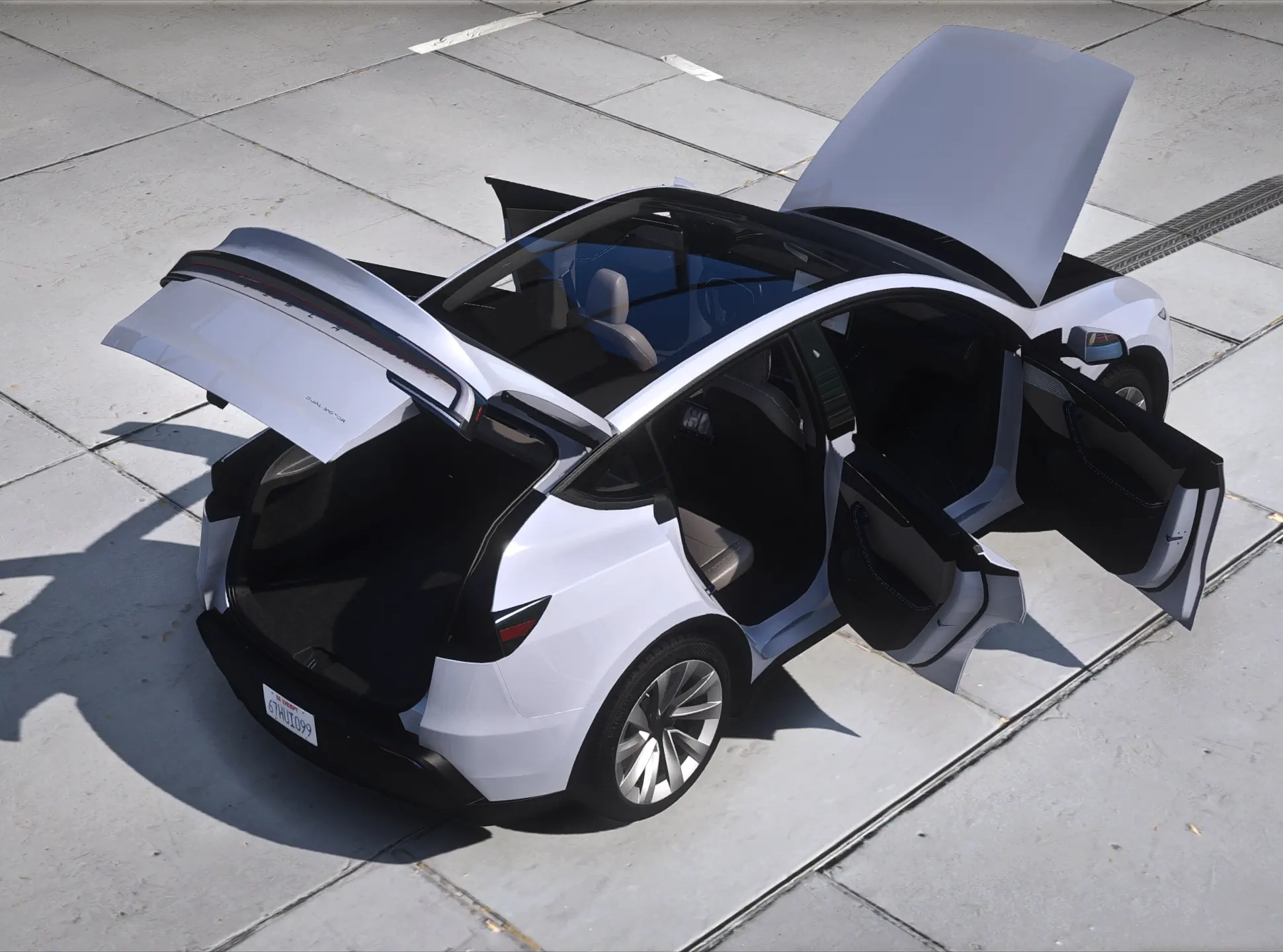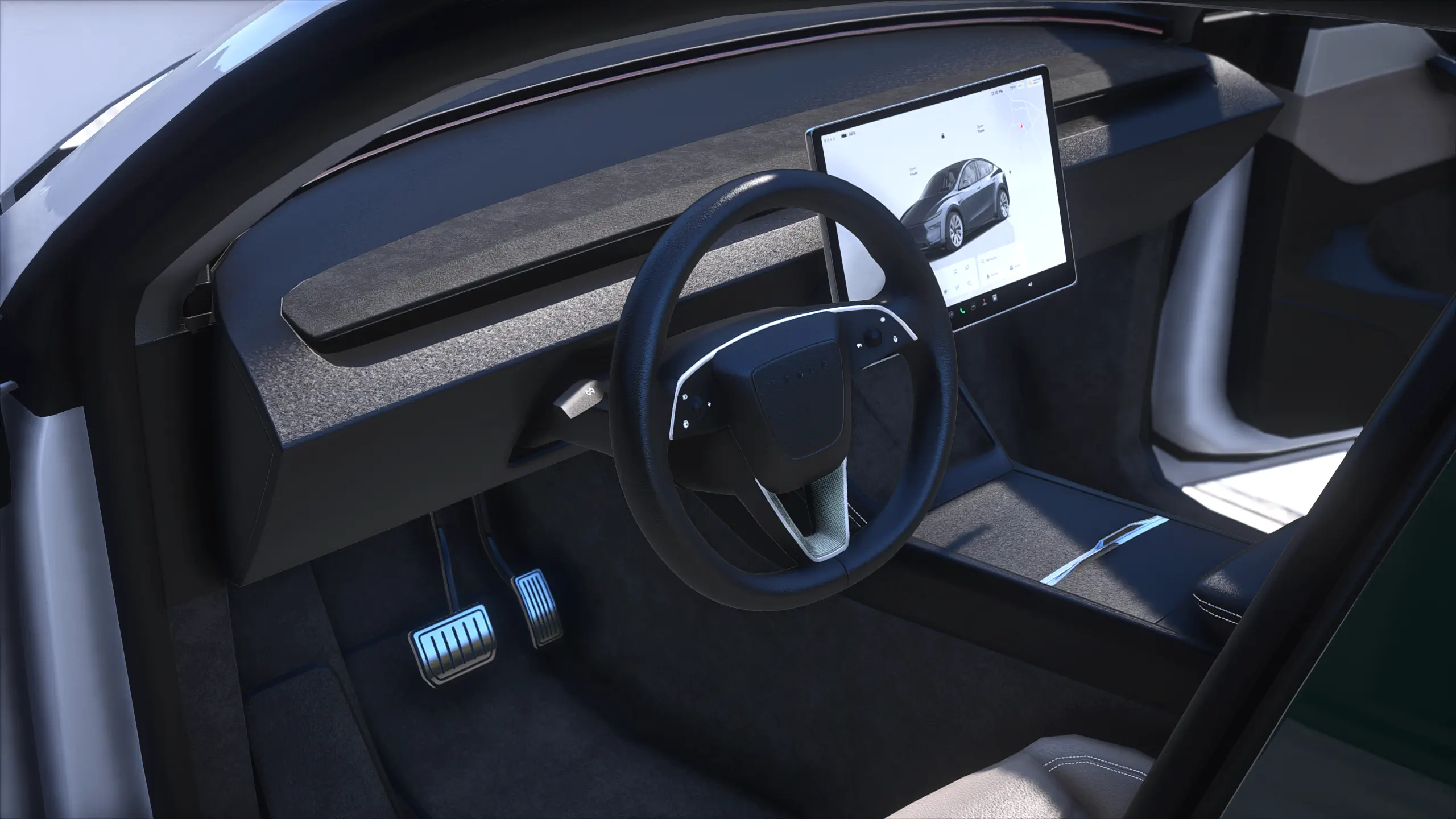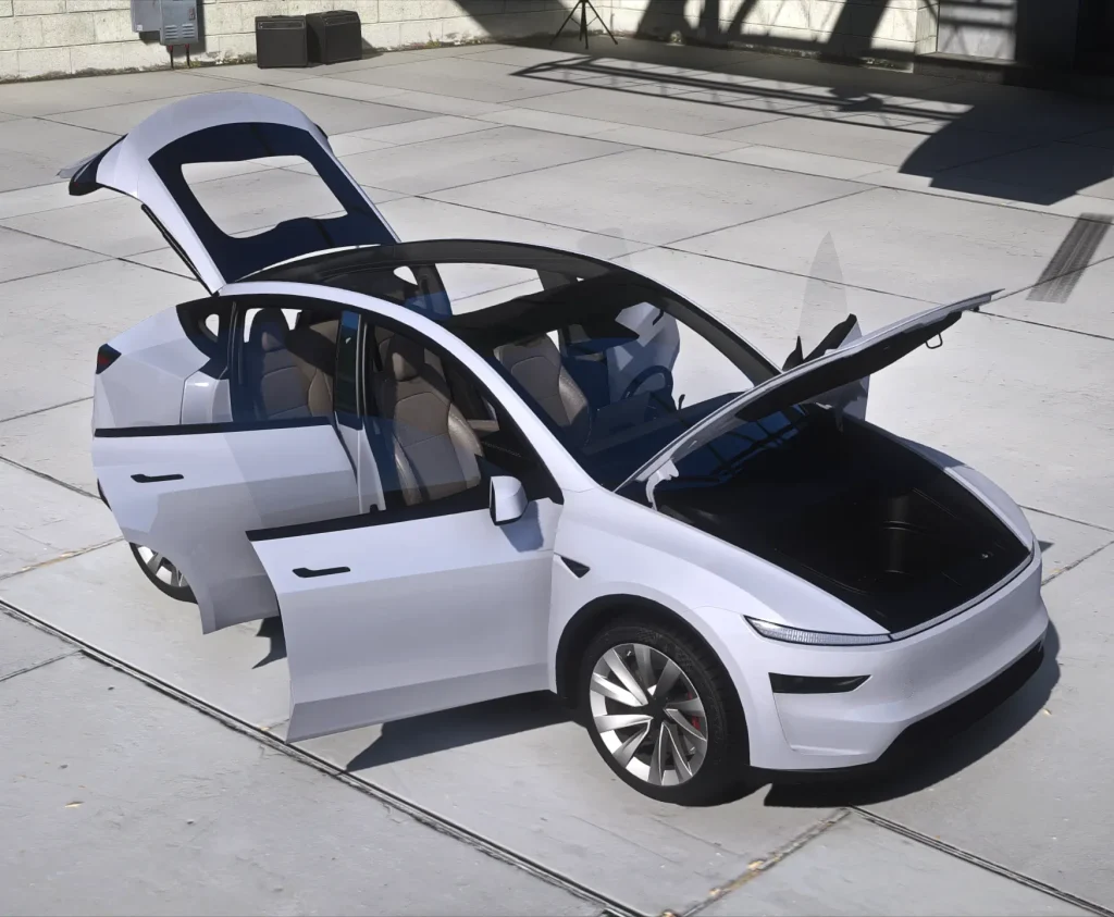 The Tesla Model Y 2026 "Juniper" refresh redefines the world’s best-selling electric SUV with a sharper, aerodynamic design and a premium cabin. This complete 3D model features the signature full-width LED light bars and a refined, "spindle-free" front fascia. It offers total accessibility, allowing you to open the power-liftgate trunk and the front trunk (frunk) for maximum roleplay utility. Inside, the high-fidelity interior showcases the 16-inch central display, integrated ambient lighting, and the new 8-inch rear passenger screen. Fully FiveM compatible and optimized, it is the ultimate high-tech daily driver for any modern server.